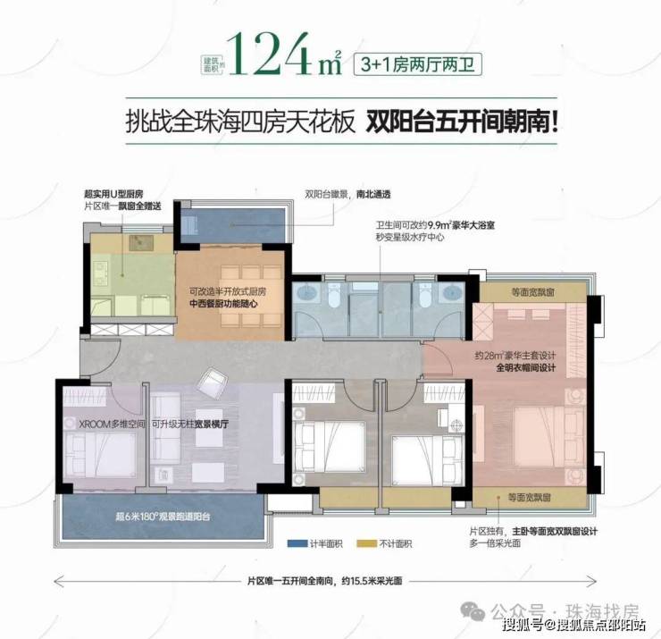 ๏多开间朝南,约15.7米全屏采光
