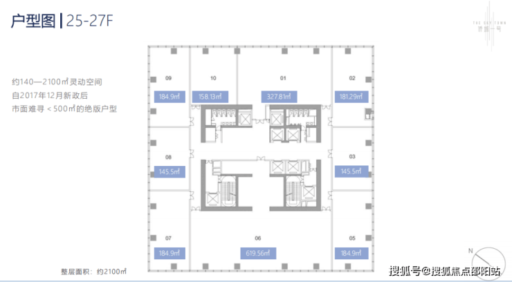 仅27层商务空间划分高中低三个电梯分区,分区细致