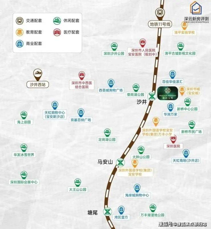 轨道交通:距离11号线“沙井站”直线约350米,步行550米,8-10分钟,6站直达宝安机场,8站宝中,9站前海