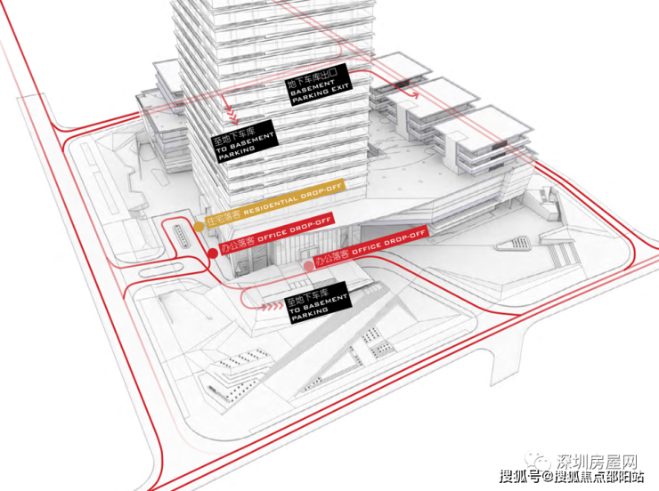 居住、办公空间独立入户大堂及车行入口,互不干扰