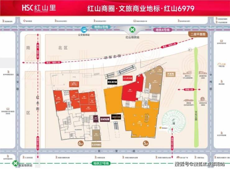 红山6979总建面约17.6万平,6.5万平红山6979沉浸开放式体验街区商业,当下最流行,2020年6月24日开业,200+品牌聚集,50+深圳首店,2.6万平下沉式广场,韩国CGV影院、最强喜剧开心麻花剧场、6000平盒马鲜生三大主力品牌,招商率过95%,龙华夜经济示范街区!