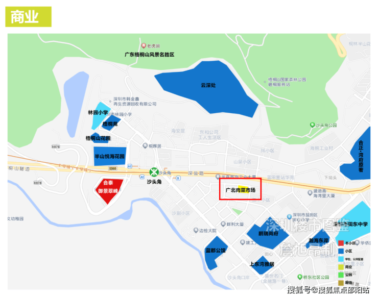周边距离723米有广北肉菜市场(深圳市盐田区政府采购中心西北),距离2.1公里外还有和亨城市广场。