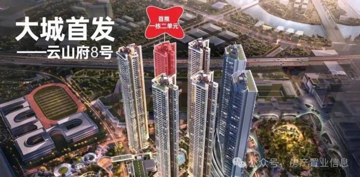 本次首推的08地块,备案名:未来平方云山府,由鸿荣源集团打造,共分3期建设,总占地面积约2.73万㎡,总建筑面积约37.41万㎡,计容建筑面积约27.51万㎡,容积率9.23,绿化率32.01%,共由5栋58-59层高住宅组成,其中1栋1单元住宅59F,1栋2/3单元住宅58F,3栋1单元/2单元住宅58F,4栋1/2单元写字楼35F,2栋是1所18班幼儿园,配建有公交首末站。