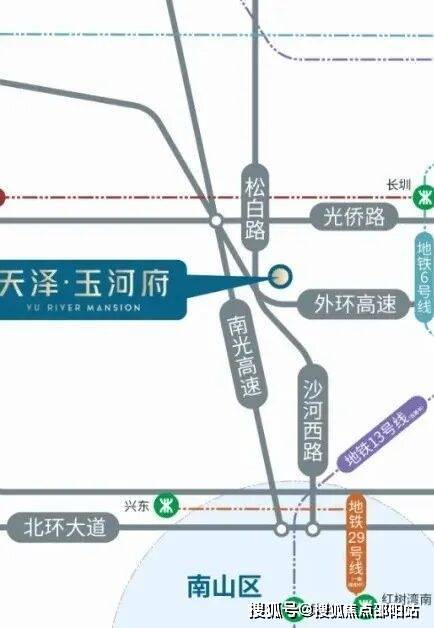 <交通>:另外通过楼下的松白路,一路往南直下,从项目上南光高速,到南山区仅29公里,约30分钟就可以直达南山西丽,留仙洞总部基地,高新园等地方。
