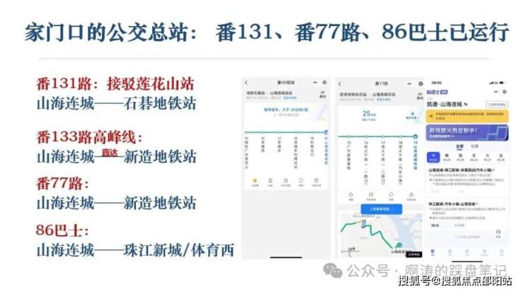 凯德山海连城在交通方面配套较为完善,附近有城轨莲花站,是湾区的交通枢纽佛莞城轨已通车,3站到万博,4站到广州南站。穗莞深城轨琶洲支线可2站到大学城,3站琶洲。广中珠澳城轨处于规划建设中,建成后可直达中山、珠海、澳门。地铁配套方面规划有8号线东延段和17号线,8号线东延段预计2027年开通试运营。在自驾出行方面,项目紧临南大干线,接驳新化快速等,开车到万博、琶洲、珠江新城等区域均在半小时左右。