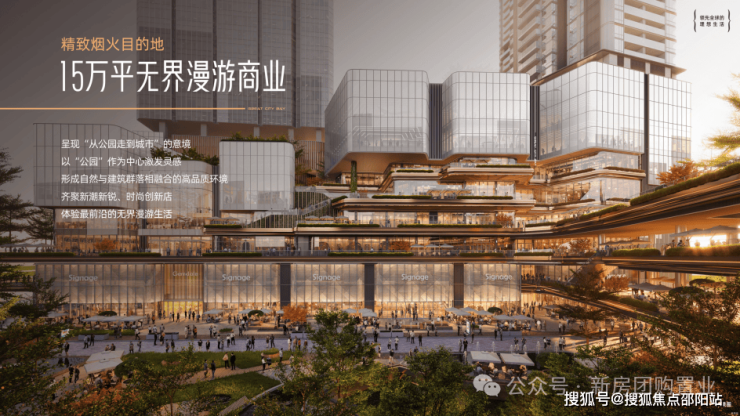 建面约15万平无界漫游商业文娱空间(商业约13万平,文娱约2.1万),城市前沿生活目的地,呈现“从公园走到城市”的意境,以“公园”作为中心激发灵感,形成自然与建筑群落相融合的高品质环境。齐聚新潮新锐、时尚创新店,体验前沿无界漫游生活。