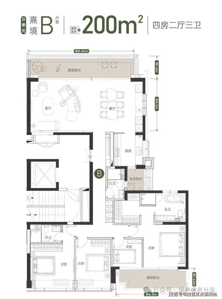 亮点四: 户户向南,动静分区, 约16.1米南向四大房,畅享尺度人居