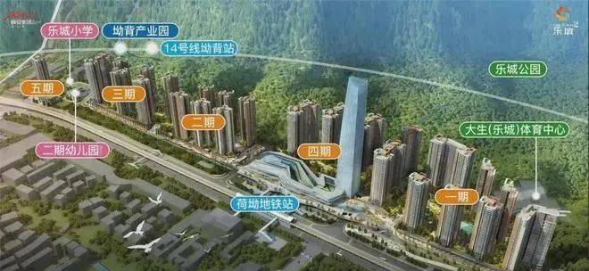 THE TOWN乐城二期项目,备案名:颐安雍悦华府,位于龙岗区园山街道龙岗大道与坳园路交汇处西北侧,项目北靠大运中心,颐安乐城总共分5期开发,乐城1期已经交房目前是二手房在售,乐城2期在2024年1月份也已经集体交房,乐城3期目前正在基桩阶段,乐城4期已经在拆平准备动工,乐城5期只有1栋楼,动作也没这么快。