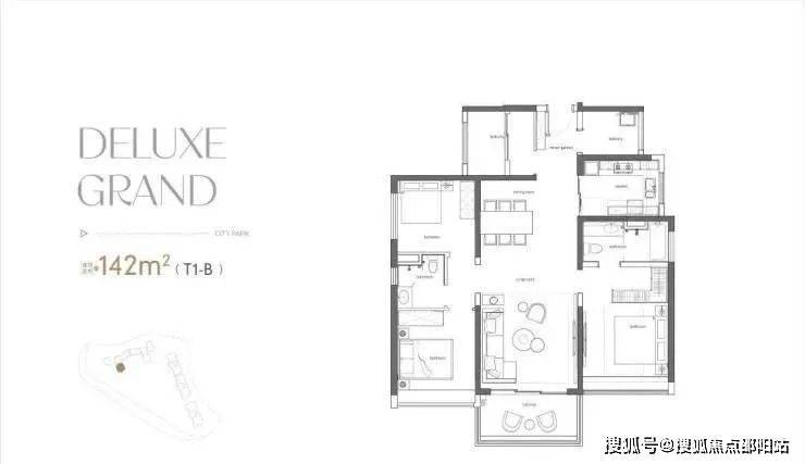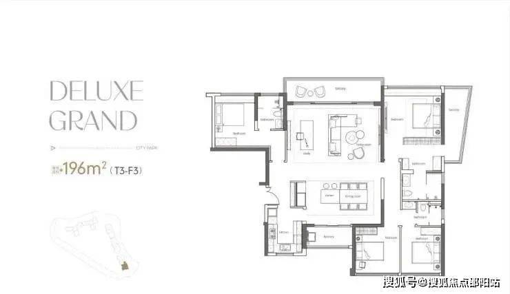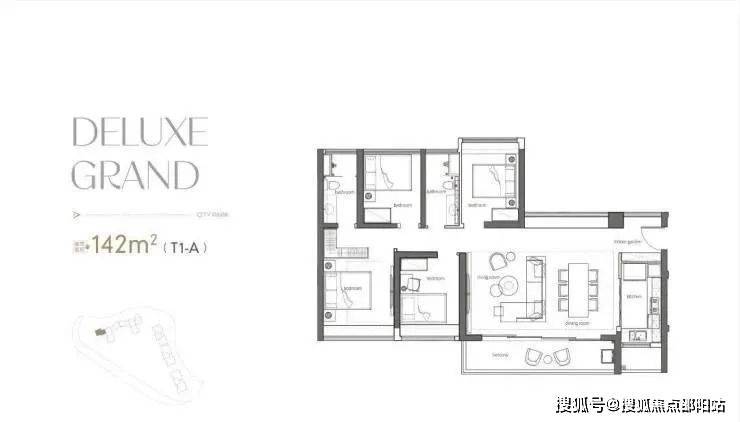 190方户型,四房两厅三卫双套房,T2组合、7米大阳台、9米阔卓厅堂、近55方餐厅,诠释了功能与奢适完美相融