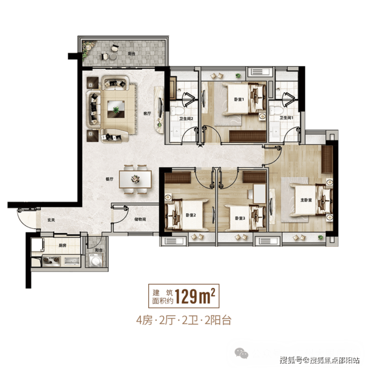 户型上,小区的户型设计基本一样,产品涵盖建面约93-95平、110平、129平四种户型,