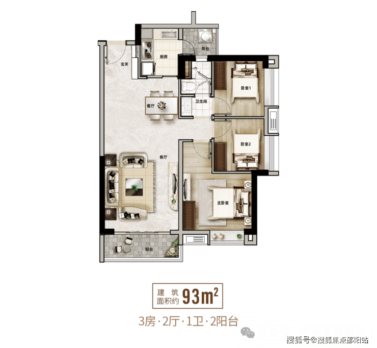 户型设计偏传统,小户型(93-95㎡)仅做到三房一卫,舒适度较为紧凑;