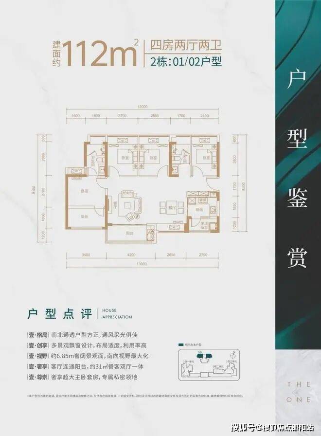 (分布在2栋01,02房南向通透结构横厅布局,空间利用充分。大开间短进深,通风采光性能*,餐客厅开间6.85米明亮舒适。主卧自然通透开间进深比良好,三次卧配置均衡,可做功能4房也可做舒适3房。U字型厨房可向生活阳台扩展,宽敞实用。