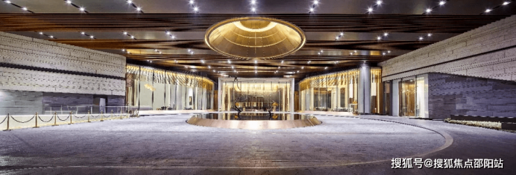 艺术雕塑之下的循环水景,倒映着的夜晚,流光溢彩,呈现如此绚丽景致的背后,是各项细节与工艺的深层考究和应用。它在设计上有个非常大的亮点,抬头看去,雕塑上方的穹顶流动了水波纹,与4楼架空层园林方形的水墨台浑然一体,同时天气晴朗时,阳光射下来,也会映射到下面的水面上,波光粼粼。象天法地,天圆地方,也象征着源源不断的财运。