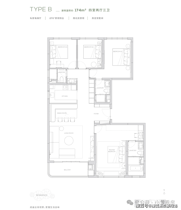174产品为四房两厅三卫产品,打造了端户边厅布局,形成LDK一体化。无界的室内空间畅游体验,在平淡的日常里体验着生活的华章。