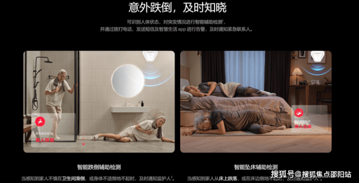 项目配备智慧康养系统实时监测居民健康数据,提供远程看护服务;同时,智能新风、冷暖调节及温湿调节系统根据环境参数自动调节室内环境,确保居住舒适与健康。