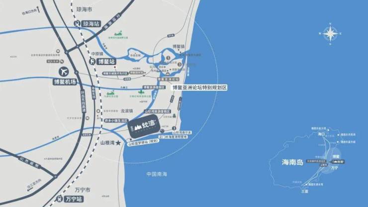 山钦湾位处博鳌亚洲论坛特别规划区旁,毗邻世界瞩目的峰层汇聚地——博鳌亚洲论坛。可近享我国唯一的医疗特区博鳌乐城内,同步世界的医疗技术及药械等高端医养服务,将打造“康养健康+自然养生+自在玩享+N”等涵盖丰富度假内容的医养旅居新高地。