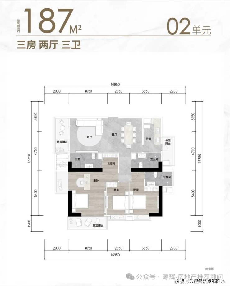 标准层面积:约620㎡ ,户型包括176㎡-187㎡-204㎡-257㎡三至四房