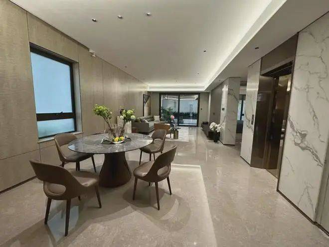 有意思的是,珠光云山壹号的叠墅产品是带精装交付,都是一线大品牌,比如博世蒸烤箱、德国“皇室制造商”唯宝洁具、全屋大金VRV中央空调及新风系统,墙面选用加拿大进口的枫影木等等。