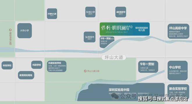 项目自带12班幼儿园,周边3块教育规划用地相邻,临近科源、科悦实验学校,深圳实验学校高中园等,初中属于碧岭实验学校大学区。