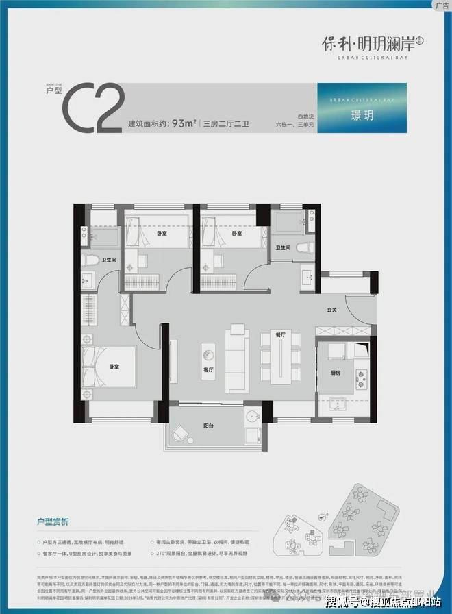 ·方正户型,通透舒居:户型方正,全明采光,科学动静分区;大面宽设计、阔绰景观阳台,将自然盛景融入日常;兼具雅致主卧套房,畅享生活的便捷私密;