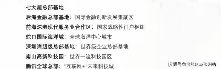 -七大全球总部基地,激荡全球资本的湾区超核,由总部经济带串联,吸引大批诸如腾讯、大疆、阿里巴巴等行业龙头企业,以及大批总部企业入驻,未来将吸引260万人才聚集。