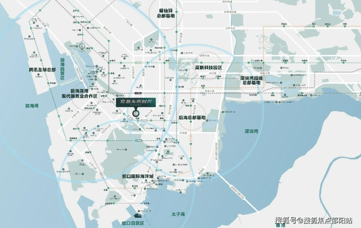 其他配套:邻近太子湾邮轮母港;坐拥深圳湾口岸、在建前海口岸;可便捷通达深港澳穗珠五地国际机场及深圳南头直升机机场。