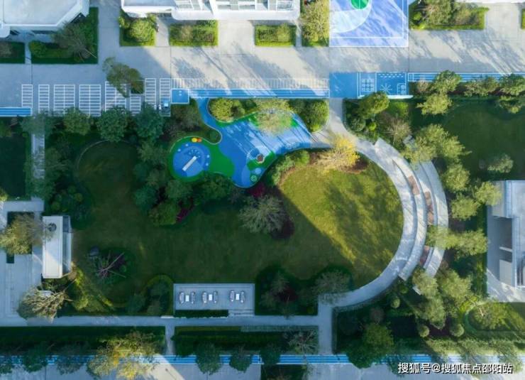 設計利用地形起伏,圍繞景觀水景建起涵蓋林下休閑、戶外會客、陽光草坪等多元化功能的城市客廳,結合節點處的蔥蘢綠植和隨時間更叠的光影變化,構築趨向於自然演繹的院落式生態場景。