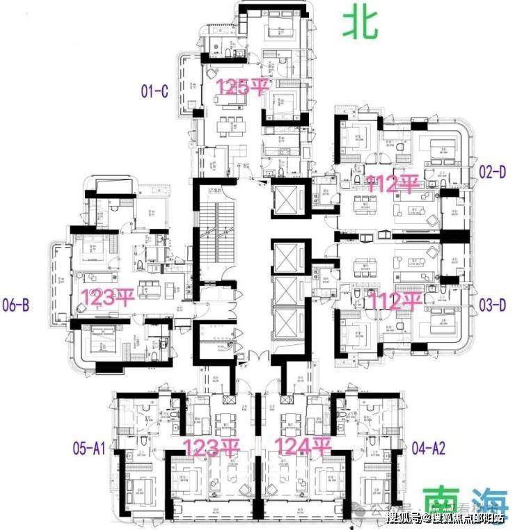 06 B户型——建面约122-124㎡3+1多功能空间: 双龙抱珠户型,次卧带阳台。西北朝向看绿地公园及花园。虽然是125㎡户型中总价最低的,但仍保持高标准的空间尺度和配置,适合注重实用性的改善家庭,属于性价比之王。