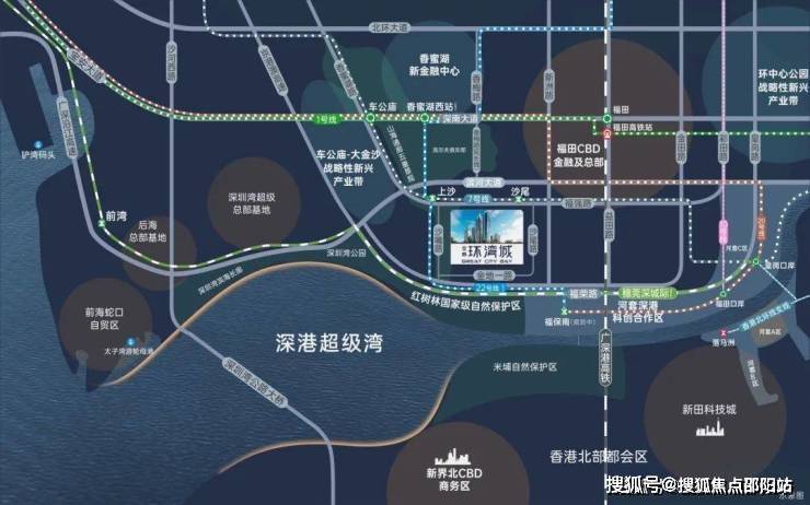 【立体交通 海陆畅达】·双地铁线:7号线双地铁口优势;22号线双地铁上沙交汇站(规划中),1站直达香蜜湖新金融中心与河套深港创新合作区。·超级口岸:皇岗口岸深度改造,深港唯一24小时陆路通关口岸,3城轨+2地铁,迅捷连通深港河套两地。·联港通沪:沪深高速磁悬浮规划,约2.5h通达沪深,链接“上广深港”南中国超级都会群。·城际轨道:全面覆盖广深科技创新走廊的穗莞深城际铁路,贯通大湾区重要科技核芯;深广中轴城际铁路,直连广深城市中心;香港北环支线,再添深港连通新轨道,便利畅达尖沙咀。