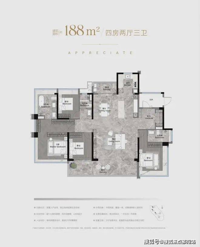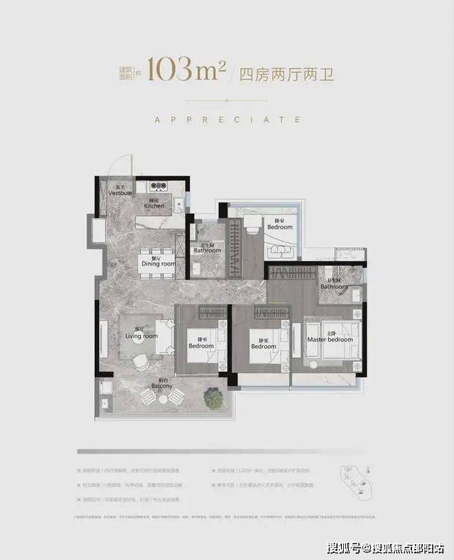 建面约103-188㎡南向阔景四房