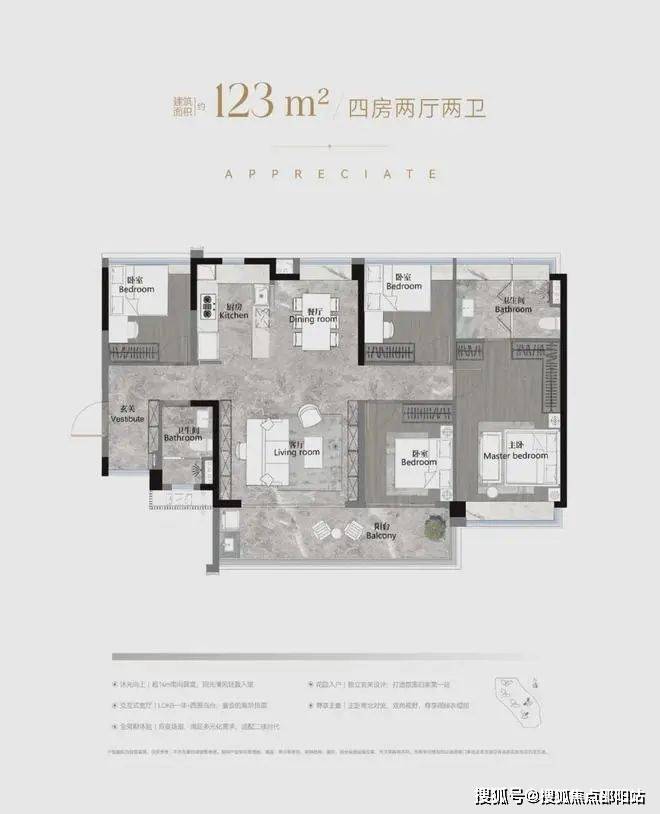 ·整体围合式布局,确保每户拥有南向景观,通风采光俱佳