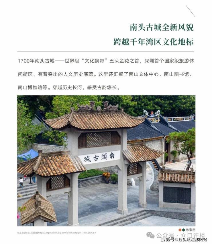 南头古城:至今1730余年,为历代岭南沿海地区的行政管理中心、海防要塞、海上交通和对外贸易的集散地,亦是深港澳地区的历史文化源头。