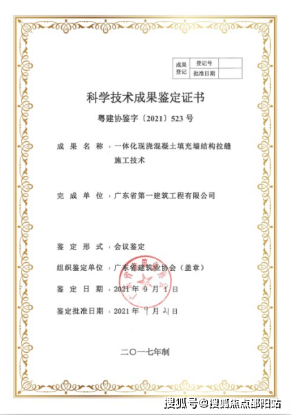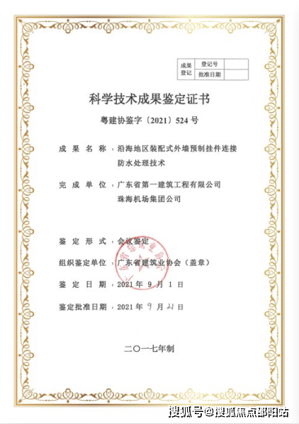 项目采用的科技创新技术,获得了“沿海地区装配式外墙预制挂件连接防水处理技术”国内先进和“一体化现浇混凝土填充墙结构拉缝施工技术”国内领先两项科技成果,并通过广东省建筑业协会科学技术成果鉴定。