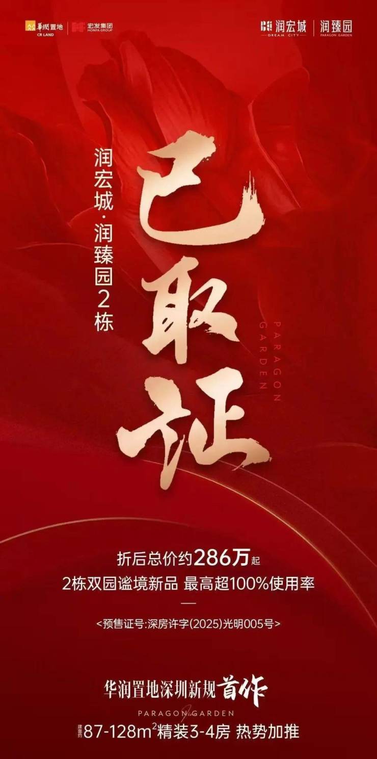 最新消息:光明华润润宏城二期——润宏城·润臻园2栋正式取得预售证,直接认购,先到先得户型建面89-110-128㎡,89㎡3+1房,128㎡4+1房,三梯六户,此次推出产品为新规建筑,使用率比较高。开盘有88折优惠,折后均价3.55万,折后总价286万起