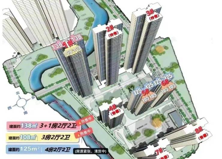 全新品质升级,目前主力在售滨水独栋A2-1栋,约110米超宽楼距,奢华无遮挡,三梯四户,户梯比例小,私密更尊贵;三面环水,围绕近1万㎡小区园林+3万㎡滨河公园,居住更舒适。