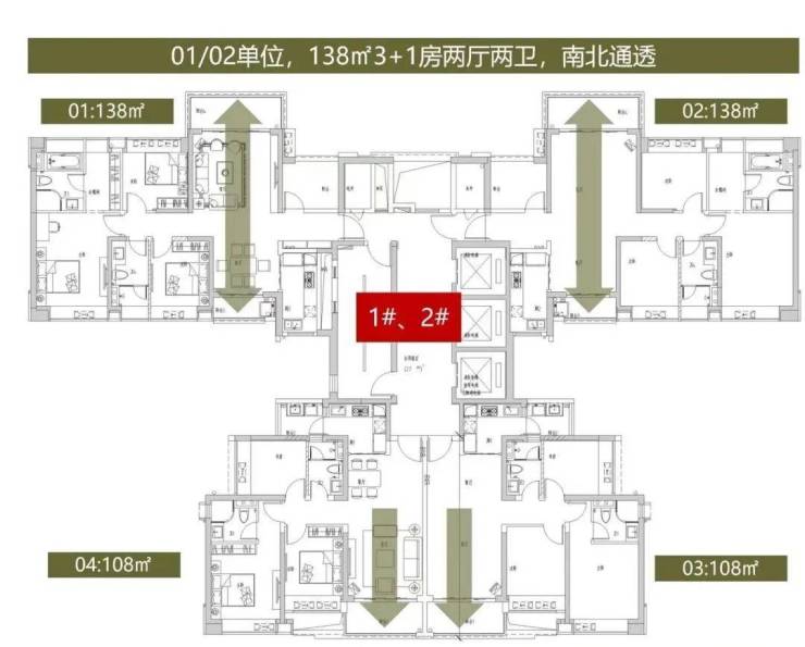 500万左右 南北对流大平层 | 建面约138㎡四房两卫