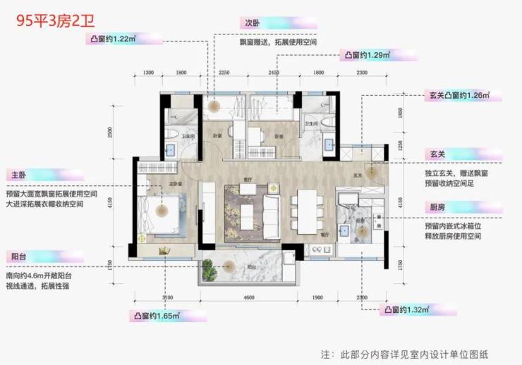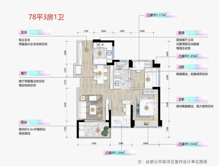 78平3房1卫,95平3房2卫,112平4房两卫三个户型
