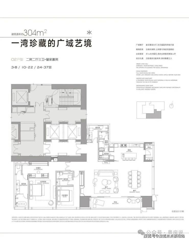 3栋低区3-37F,三面采光,客厅及主卧朝南看海,除了书房其它卧室全套房设计,该有的功能和尺度都给到了。缺点的话就是主卧整体尺度偏局促了一点。