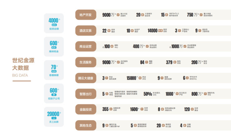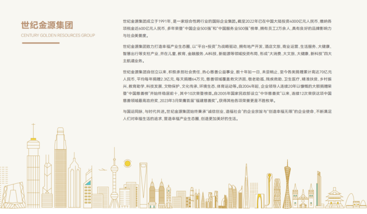 世纪金源成立于1991年,是一家综合性跨行业的国际企业集团。截至2022年已在中国大陆投资4000亿元人民币,缴纳各项税金近600亿元人民币,多年荣登“中国企业500强”和“中国服务业500强”榜单,拥有员工2万余人,具有良好的品牌影响力与社会美誉度。