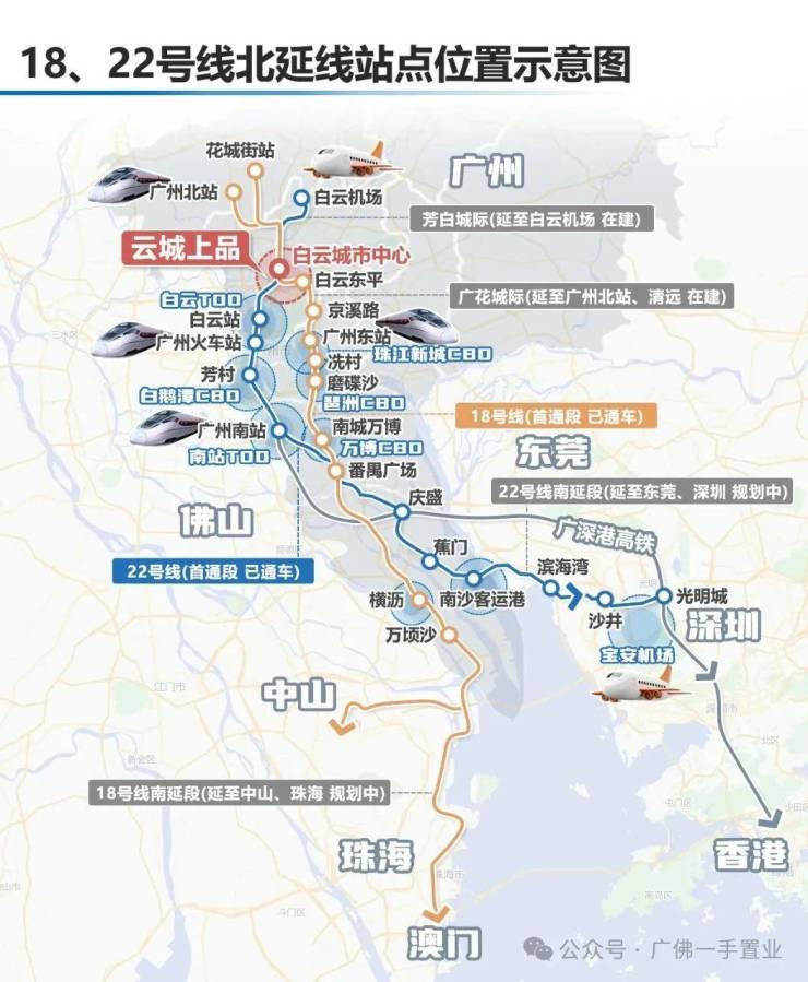 项目之所以被称为TOD,是因为手握18号线、22号线两条超级走廊,它们交汇的白云城市中心站,就位于项目门口。两条地铁的北延段均已获批,目前正如火如荼施工中。与此同时,未来34、39号线(规划中)也将在白云城市中心设站。18+22号线这两条大动脉都是时速160KM/h的高速地铁,广州云城上品售楼处电话:400-150-5057业主可凭此轻松实现3站天河北、4站珠江新城、5站琶洲CBD的快速通勤;未来再加上34、39号线,业主就可以通过地铁直通深圳、香港、东莞、珠海等地。