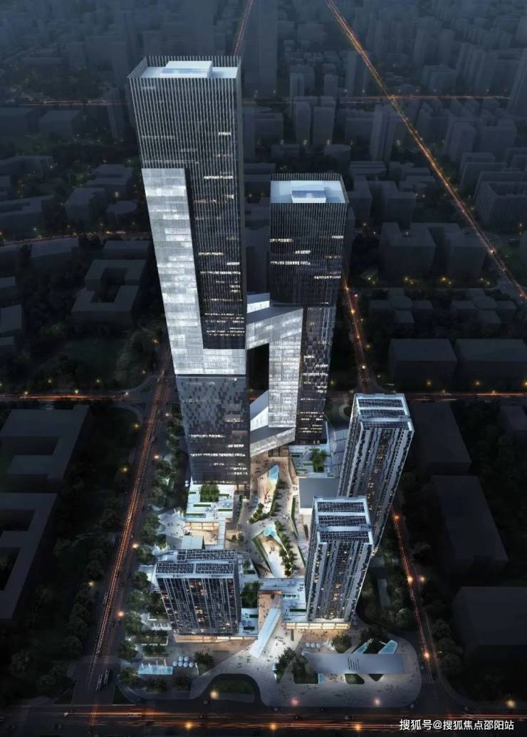 中心由五座塔楼组成,其中两座为超高层研发办公楼,分别高达320米(71层)和246.6米(54层)。两座研发办公楼由两座高度各异的三层建筑连接,为办公用户和访客提供配套设施和服务。另外三座塔楼为酒店式公寓,分别高达150米(45层)、120米(37层)和106米(30层)。