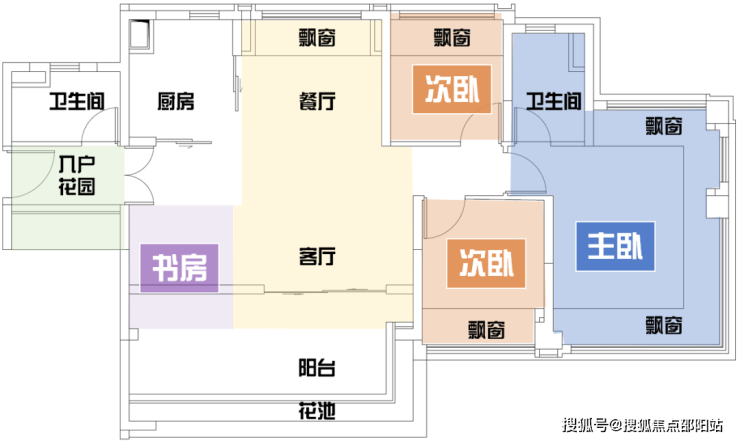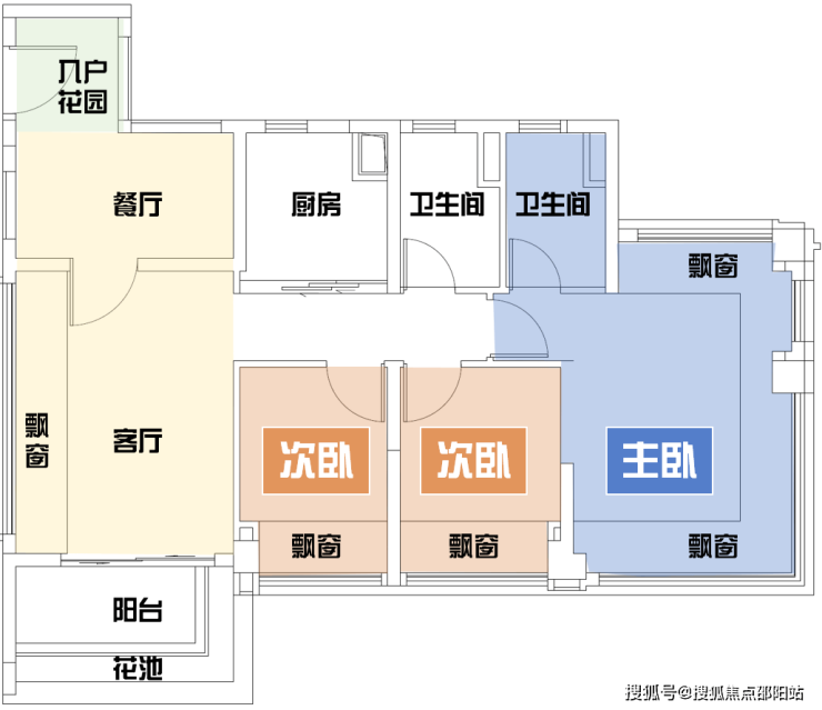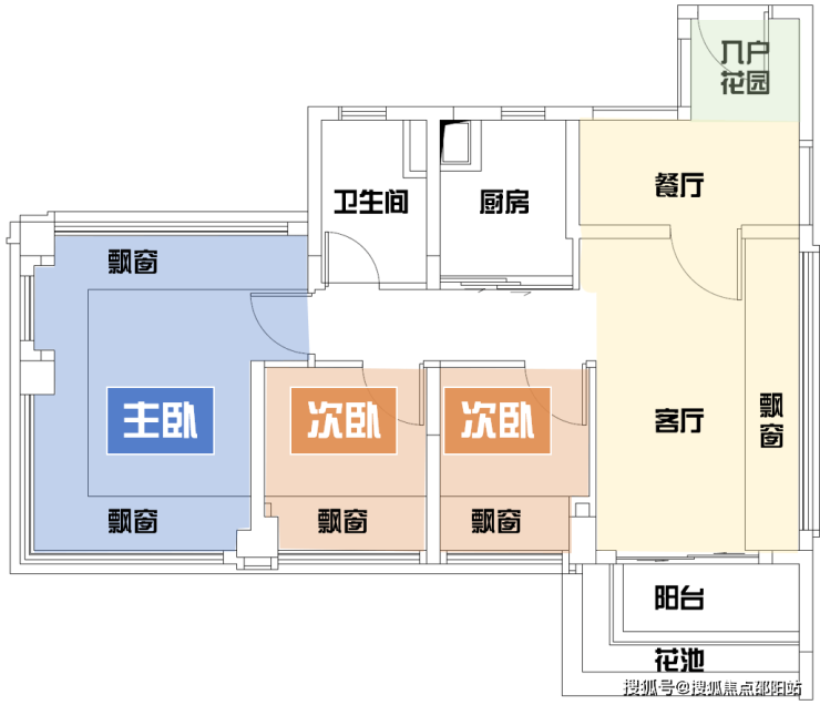②进阶格局:4.5开间朝南、南北对流、主卧270°环幕飘窗