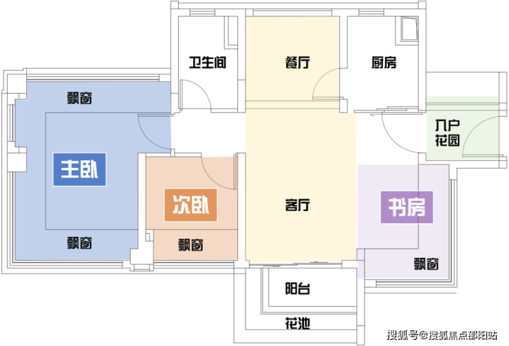 ②舒适格局:4开间朝南、稀缺南北对流、带入户花园、主卧270°环幕飘窗