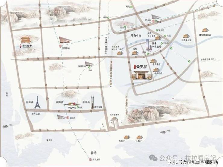 金尊府位于 坪山高铁站的南侧约3.3公里
