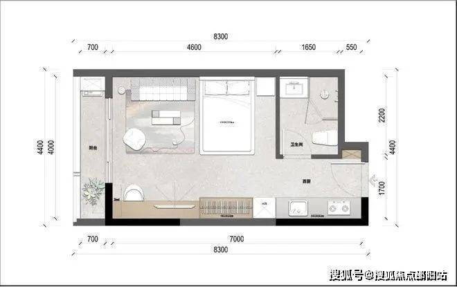 公寓:42平(一房一厅一卫或大单间)