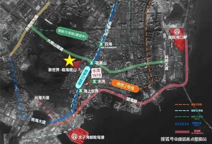 地铁2号线水湾站、海上世界站,12号线花果山站(图工业六路);南海大道及沿江高速;邮轮母港、蛇口港、深圳湾口岸。