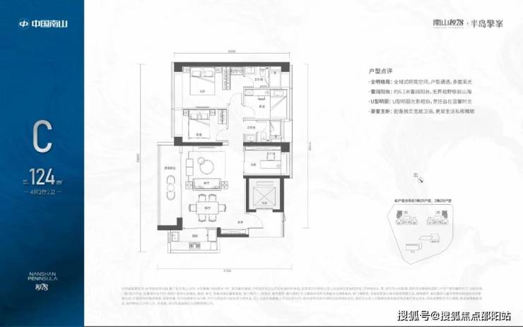 124㎡的3+1房2厅2卫,1栋02/2栋04户型,电梯入户送独立公区,设计的是竖厅格局,LDKB一体化设计,动静分区,主卧套间设计,还有一个多功能间可以做书房,U型厨房,公卫三段式分离,得房率:72.07%(不含赠送),西南朝向。