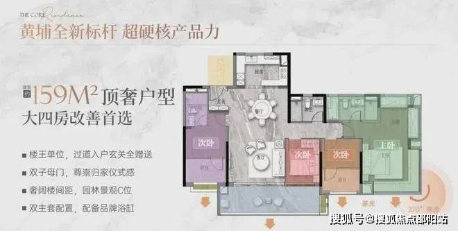 建面158平,五开间朝南,约17米南向采光面,约7.7米宽景阳台而且该户型位于项目C位视野非常好。