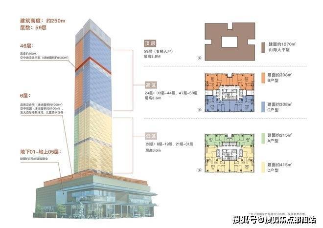 建筑总层数:地下01-地上05层为商业、地上08-59层为品质公寓