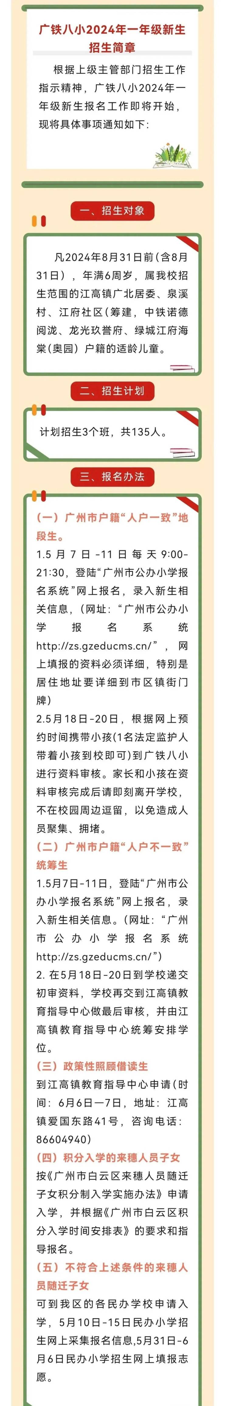注意,此广铁非广铁一中,全称羊城铁路总公司广州铁路第八小学,人户一致优先